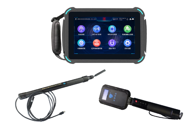 内窥镜主要用于检测隐藏在天花板、空调出风口、家具底部等不便接触检查的位置,可以对检测区域画面成像,进一步判断有无可疑装置。伸缩内窥镜可以调整高度和长度对高处的空调出风口和柜子底部等部位进行检测。